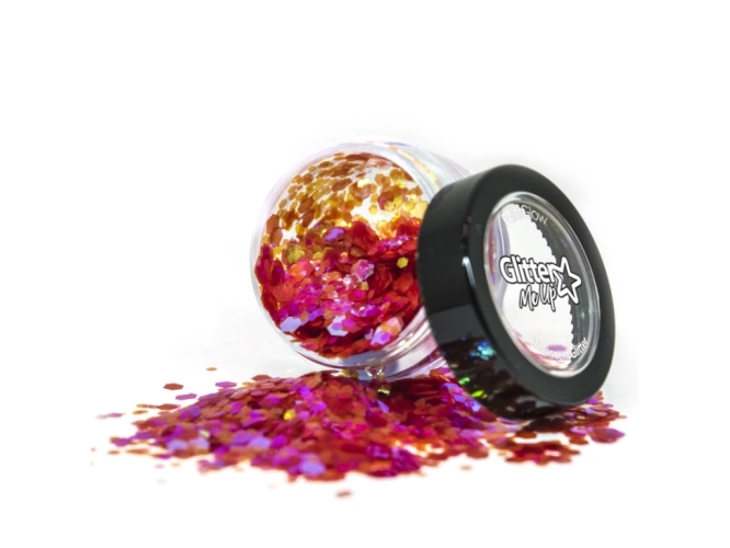 Šestihranné třpytky "chunky glitter" s velikostí cca 3 mm.