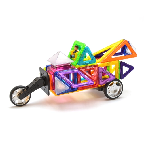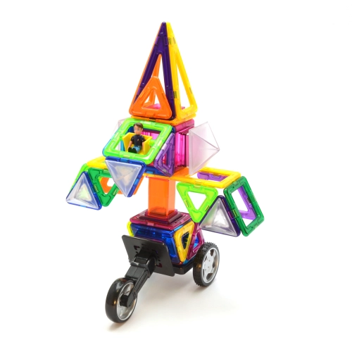 Magformers Extenzo box je nový box od Magformers ve kterém je část magnetických dílků nahrazena plastovými nástavci, které nejen snižují cenu stavebnice, ale klíčové konstrukční prvky zpevňují a nabízejí nové možnosti tvarových kombinací. Díky nástavcům lze ušetřit mnoho čtverců i trojúhelníků a stavět pevné tubusy aut nebo věže se zajímavou siluetou.