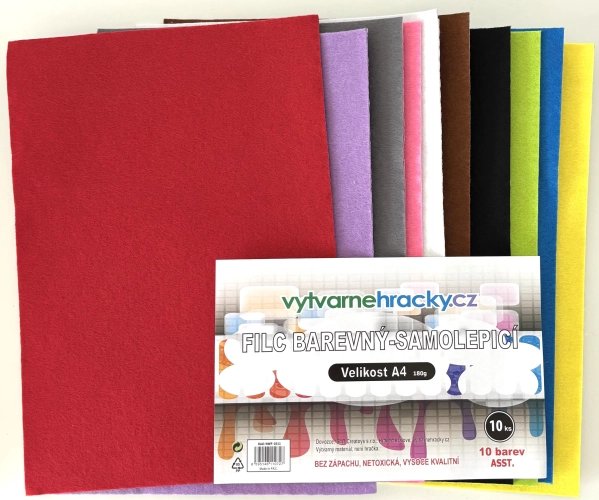 Filc - 10 ks, mix barev, A4, 180 g. - samolepicí