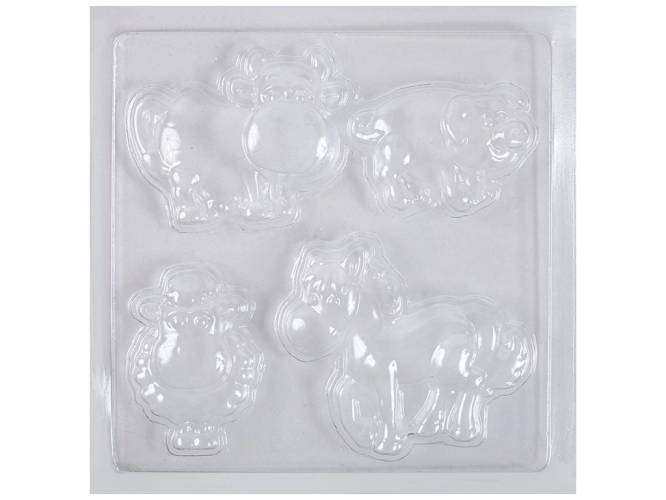 Plastová forma k opakovanému používání, rozměr 17 x 17 cm, 4 motivy. Vhodné pro modelovací hmotu, odlévání ze sádry apod.