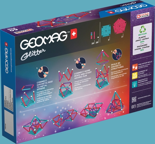 Magnetická stavebnice Geomag Recycled 60 pcs - magnetické tyčky obsahují drobné třpytky.
