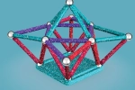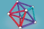 Geomag Recycled 60 pcs obsahuje celkem 60 dílků - 28 dlouhých tyček v růžové a modré barvě, 28 kuliček a 4 stavební podložky (2x čtverec a 2x pětiúhleník)