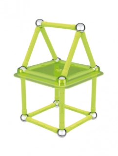 Magnetická stavebnice Geomag Glow 30 obsahuje 13 dlouhých svítících magnetických tyček (6 cm), 16 ks kuliček a 1 čtvercovou stavební podložku. Barva tyček: fluorescenční (ve tmě svítí) Barva podložky: zelená