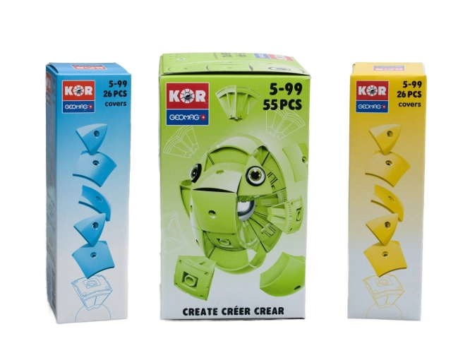 Sada Geomag Kor Egg - vajíčko zelené + 2 balení kreativních krytek - žluté a modré. Celkem 104 dílů.