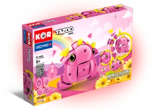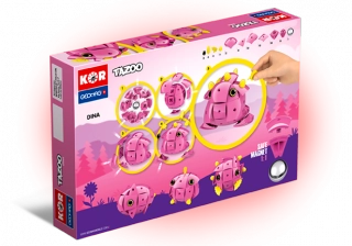 Dovolte, abychom vám představili Dinu, nejnovější přírůstek do rodiny KOR Tazoo. Geomag KOR TAZOO Dina - roztomilé stvoření pro holčičky. Magnetická stavebnice KOR TAZOO Dina obsahuje celkem 70 dílků. Základem stavebnice je velká ocelová kulička, plastové dílky obsahující magnet a další komponenty. Všechna stvoření TAZOO jsou vzájemně kompatibilní - Beto, Paco, Jelo i Toco.