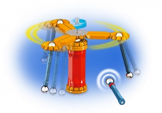 Zkus použít klasické Geomag kuličky jako ložiska a vytvoř si modely, které rozpohybuješ jen pomocí magnetické síly! Třeba kolotoč. Bude tě to bavit! Stavebnice Geomag Mechanics 33 obsahuje celkem 33 dílků - 4 magnetické tyčky, 10 ocelových kuliček, 1 věžičku a 18 dalších plastových prvků.
