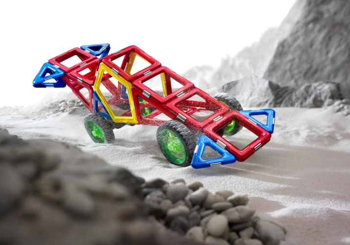 Hra s touto stavebnicí je pro děti velmi přínosná. Pomáhá rozvíjet prostorovou představivost, koordinaci ruky a oka, koncentraci, logické myšlení a kreativitu. Tato sada obsahuje celkem 36 dílů. 30 různých magnetických geometrických tvarů, 4 kola a 2 podvozky.