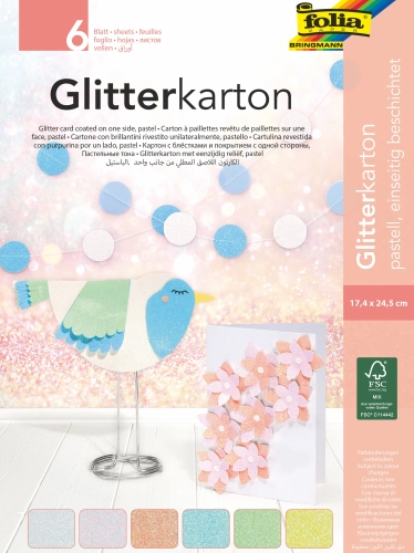 Každý arch má rozměr17,4 x 24,5 cm, což zaručuje snadnou manipulaci při stříhání, lepení i skládání. Papír je jednostranný – třpytky jsou pouze na jedné straně, druhá je hladká pro snadné lepení nebo psaní.
