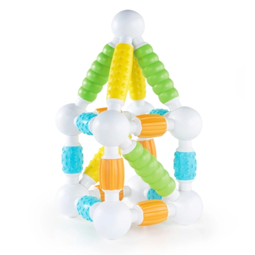 Stavebnice obsahuje 12 kuliček a 12 kratších a 6 delších magnetických dílků ve čtyřech barvách provedených s prostorovou texturou. Doporučeno pro děti od 18 měsíců.