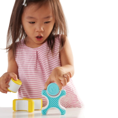 GRIPPIES je revoluční magnetická stavebnice, která již vyhrála několik ocenění. Kombinuje hmatové vjemy, prostorovou představivost a cit pro rovnováhu. Jednotlivé díly jsou potaženy příjemným měkkým povrchem s různými texturami a opatřeny čtyřmi jasnými barvami. Díky magnetům lze jednotlivé části spojovat a různě vzájemně kombinovat a tím pak vytvářet nespočetné množství různých staveb. Dílky jsou navrženy, tak aby byly maximálně bezpečné a děti je mohly bez problému uchopit a manipulovat s nimi.