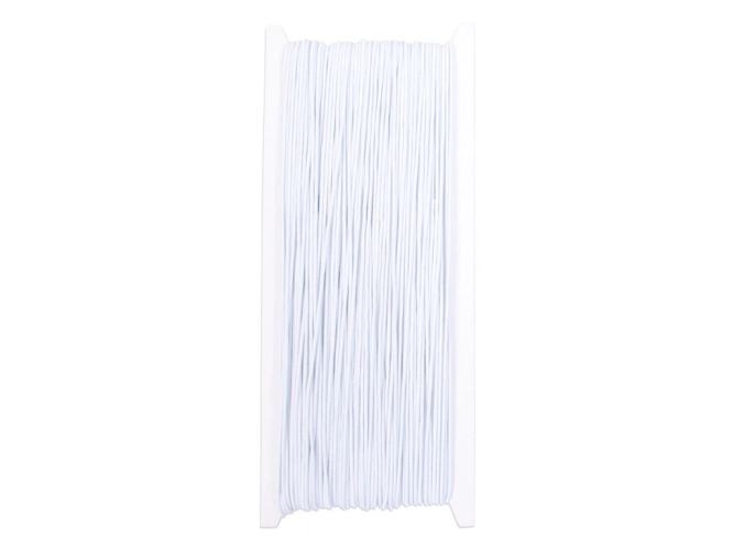 Elastická bílá gumička je vysoce kvalitní, při ustřižení se netřepí. Snadno se s ní manipuluje a je vhodná pro výrobu náramků, náhrdelníků, a nebo třeba přívěsků na klíče.