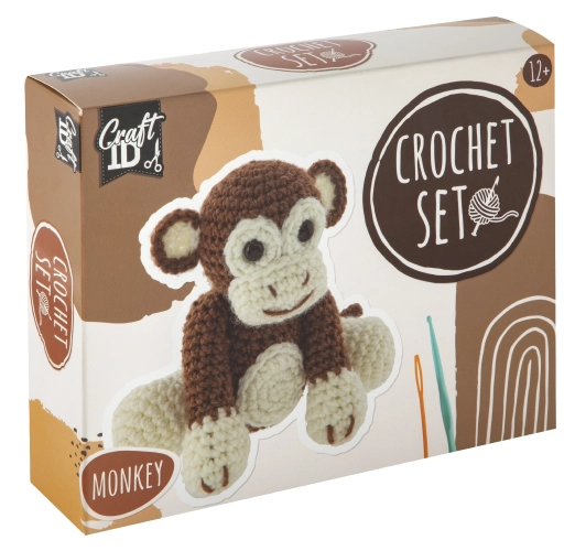 - hnědo a bílou přízi, výplň, háček, plastovou jehlu a knoflíky na oči