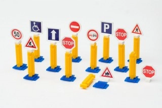 Sada 12 dopravních značek Interstar, možný doplněk všech stavebnic Interstar, vhodný zejména ke stavebnicím Interstar Kola nebo Interstar Kostky.