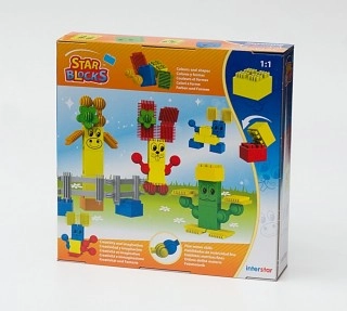 Stavebnici Veselá zvířátka 50 tvoří mix dílků Interstar různých tvarů a dílků s obrázky, pro sestavování rozverných zvířátek.
