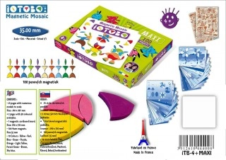 Maxi formát tvořivé mozaikové skládačky iOTOBO Maxi 4+ je obohacen o větší počet pěnových magnetek a pestrobarevných obrázkových předloh, čím rozšiřuje možnosti dětské tvořivosti a a zábavy. Vyrobeno ve Francii z kvalitních certifikovaných materiálů. Dílky jsou umývatelné.