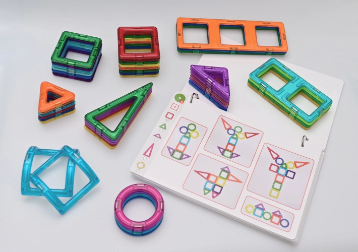 Moderní čtyřicetistránková učebnice s metodickými pokyny pro děti i rodiče. Celý projekt souborů výukových karet s dílky Magformers je realizován ve spolupráci s akreditovanou lektorkou dalšího vzdělávání učitelů, RNDr. Marií Kupčákovou, Ph.D. Geometrické karty jsou sestavené v souladu s platnými učebními osnovami, upevňují a rozvíjejí geometrické poznatky žáků, ale zároveň sledují současné požadavky na zjednodušení učební látky.