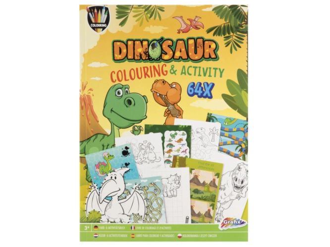 S touto knihou plnou omalovánek a aktivit s dinosaury budete vybarvovat, kreslit, lepit samolepky, dělat úkoly.