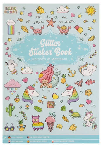 Knížka třpytivých samolepek, A5 - jednorožec a mořská panna