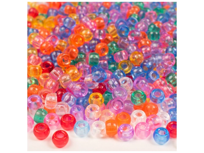 Balení obsahuje cca 1000 ks průhledných korálků o Ø 9 mm, Ø průvleku 4 mm v barvách - růžová, oranžová, sv. modrá, antracitová, čirá, žlutá, červená, zelená.