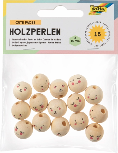 Korálky dřevěné - obličeje, 15 ks (15 mm)