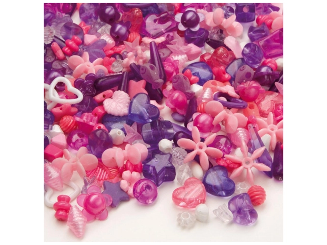 Perly v jemných odstínech fialové a růžové. Spousta různých tvarů umožňuje vytvořit nápadité náramky a náhrdelníky nebo proč ne osobní ozdobu na klíčenku. Korálky jsou vhodné pro všechny druhy řemesel díky nekonečným kombinacím barev a tvarů.