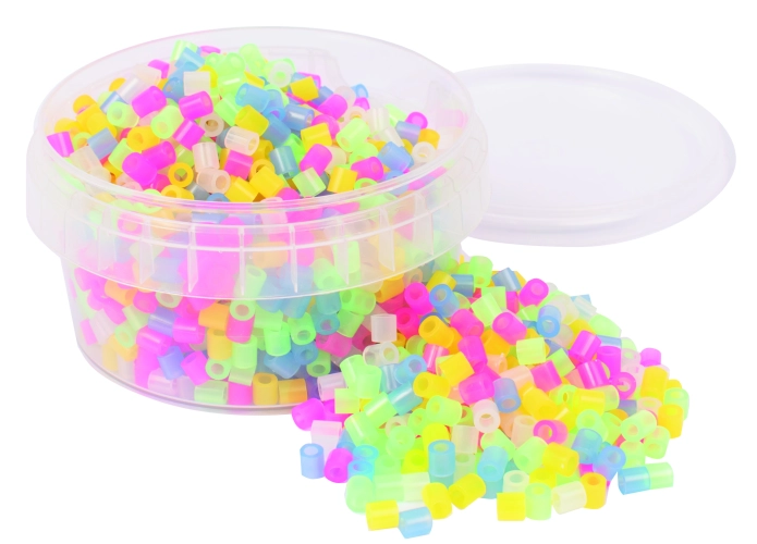 K sestavení obrázků z korálků používejte podložky pro korálky, na které buď podle šablon nebo podle vlastní fantazie vytváříte nejrůznější motivy. Poté na vyskládaný obrázek položte běžný pečící papír a zažehlete žehličkou ohřátou na nejvyšší stupeň. Nechte korálky vychladnout, obrázek sejměte z podložky a máte hotovo! Vhodné pro děti na podporu jemné motoriky. Korálky nemusíte jen zažehlovat, můžete je používat jako normální korálky a navlékat je na provázek.