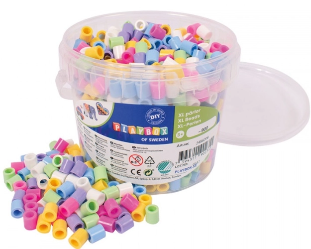 Zažehlovací korálky XL v praktickém kbelíčku mix 6 barev - bílá, žlutá, růžová, pastelová fialová, pastelová modrá, pastelová zelená.