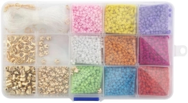 Barevné plastové korálky v tubě + šňůrka, 350 ks, pastelové