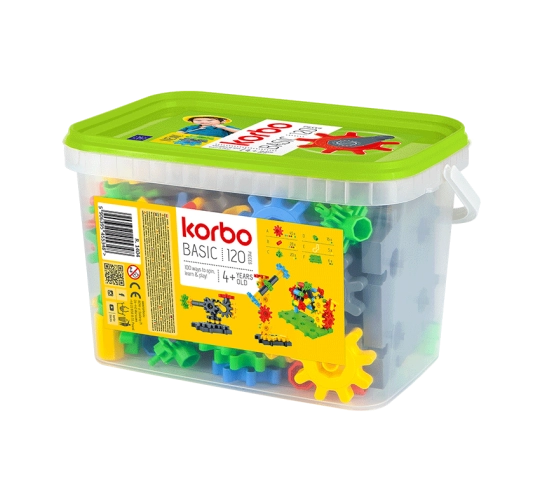 KORBO je plastová stavebnice založená na fungování převodů, díky nimž je možno celé stavby rozpohybovat. Výhodou je jednoduchost a možnost vytváření velkých pohyblivých objektů. Stavebnice inspiruje děti k logickému myšlení a vyvolává chuť experimentovat. Všechny dílky se dají skládat na základnu zajišťující stabilitu a funkčnost. Stavebnici lze pohánět ručně, ale například také proudem vody. Ozubená kolečka jsou přizpůsobena velikosti dětské ruky.
