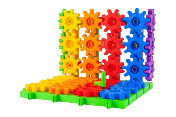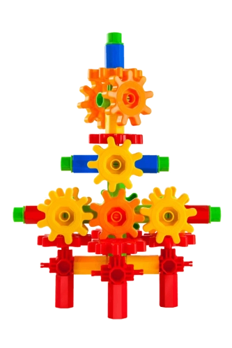 Stavebnice KORBO Basic 90 obsahuje 90 dílů: 36x ozubené kolečko, 20x trubička, 12x spojovací díl, 12x spojovací díl-trubička, 6x klika, 4x podložka