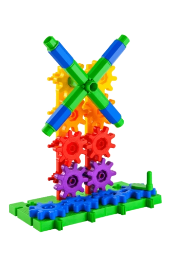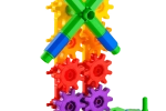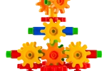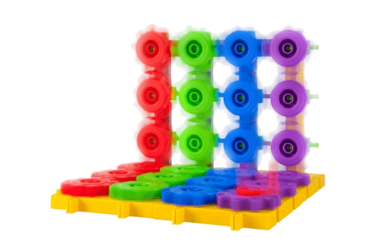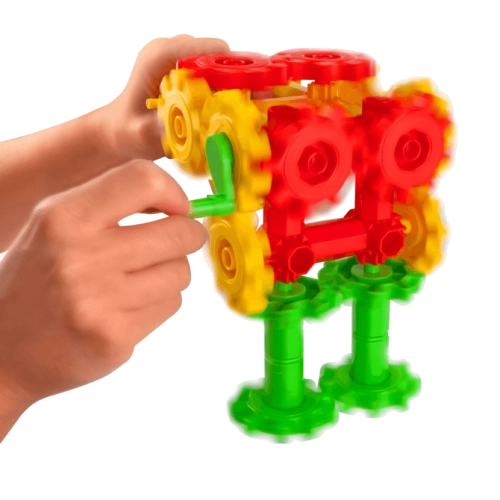 KORBO 90 je základní stavebnice se čtyřmi zelenými podstavci. Pro roztočení soukolí lze použít kličky, které jsou součástí balení.