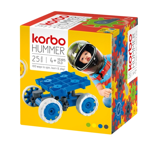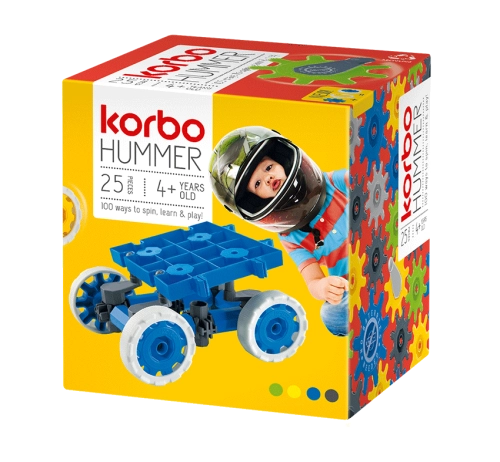 Stavebnice KORBO Hummer 25 modrá je sada dílů a převodů s pneumatikami. Můžete sestavit různé typy vozidel s převody.