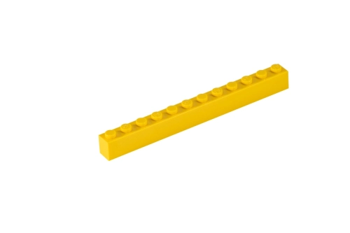 Stavební kostka Q-Bricks 12x1 žluté barvy, použitelná jako dlouhý a pevný nosník. Rozměr kostky 96x8 mm. Kompatibilní se všemi kostkami Q-Bricks i kostkami legendární dánské stavebnice.