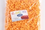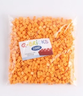 Stavební kostka Q-bricks 1x1 melounové (žluto-oranžové) barvy. Rozměry 8x8 mm.