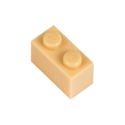 Stavební kostka Q-bricks 2x1 béžové barvy. Rozměry 16x8 mm. Kompatibilní s kostkami klasického Lega.
