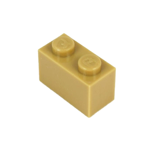 Stavební kostka Q-bricks 2x1 tmavě béžové barvy. Rozměry 16x8 mm. Kompatibilní s kostkami klasického Lega.