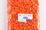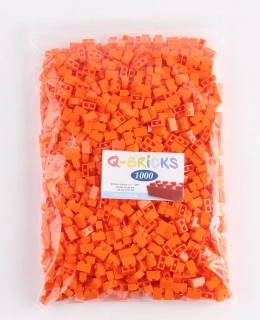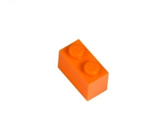 Stavební kostka Q-bricks 2x1 jasně oranžové barvy. Rozměry 16x8 mm. Kompatibilní s kostkami klasického Lega.