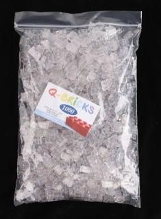 Stavební kostka Q-bricks 2x1 průhledná (transparentní). Rozměry 16x8 mm. Kompatibilní s kostkami klasického Lega.
