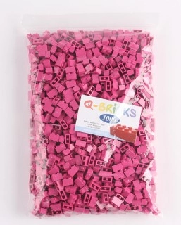 Stavební kostka Q-bricks 2x1 růžové barvy. Rozměry 16x8 mm.