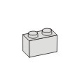 Stavební kostka Q-bricks 2x1 světle šedé barvy. Rozměry 16x8 mm. Kompatibilní s kostkami klasického Lega.