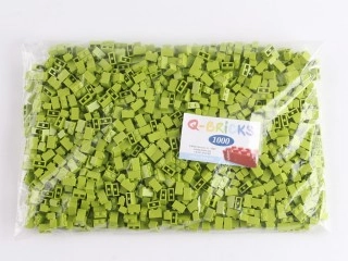Stavební kostka Q-bricks 2x1 trávově zelené barvy. Rozměry 16x8 mm. Kompatibilní s kostkami klasického Lega. Zelené kostky nabízíme i v dalších velikostech a odstínech - Zelené kostky Q-Bricks.
