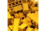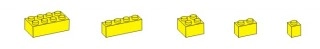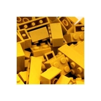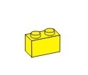 Stavební kostka Q-bricks 2x1 žluté barvy. Rozměry 16 x 8 mm. Kompatibilní s kostkami klasického Lega.