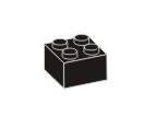 Stavební kostka Q-bricks 2x2 černé barvy. Rozměry 16x16 mm. Kompatibilní s kostkami klasického Lega.