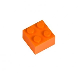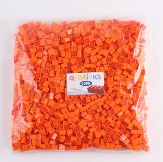 Stavební kostka Q-bricks 2x2 jasně oranžové barvy. Rozměry 16x16 mm. Kompatibilní s kostkami klasického Lega.