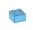 Stavební kostka Q-bricks 2x2 světle modré barvy. Rozměry 16 x 16 mm. Kompatibilní s kostkami klasického Lega.