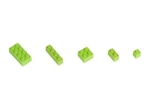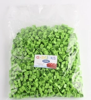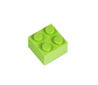 Stavební kostka Q-bricks 2x2 světle zelené barvy. Rozměry 16x16 mm. Kompatibilní s kostkami klasického Lega.