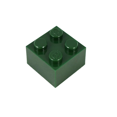 Stavební kostka Q-bricks 2x2 tmavě zelené barvy. Rozměry 16x16 mm. Kompatibilní s kostkami klasického Lega. Zelené kostky nabízíme i v dalších velikostech a odstínech - Zelené kostky Q-Bricks.