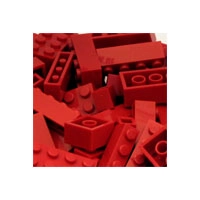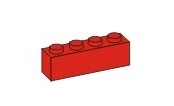 Stavební kostka Q-bricks 4x1 červené barvy. Rozměry 32 x 8 mm. Kompatibilní s kostkami klasického Lega.