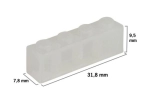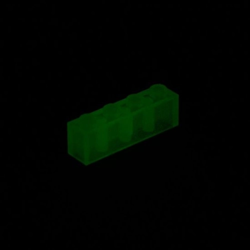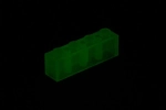 Stavební kostka Q-bricks 4x1 Glow, která ve tmě svítí (fosforeskuje). Rozměry 32x8 mm. Kompatibilní s kostkami klasického Lega.