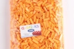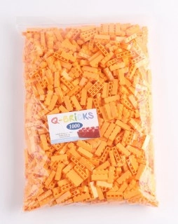 Stavební kostka Q-bricks 4x1 melounové (žluto-oranžové barvy) barvy. Rozměry 32x8 mm. Kompatibilní s kostkami klasického Lega.